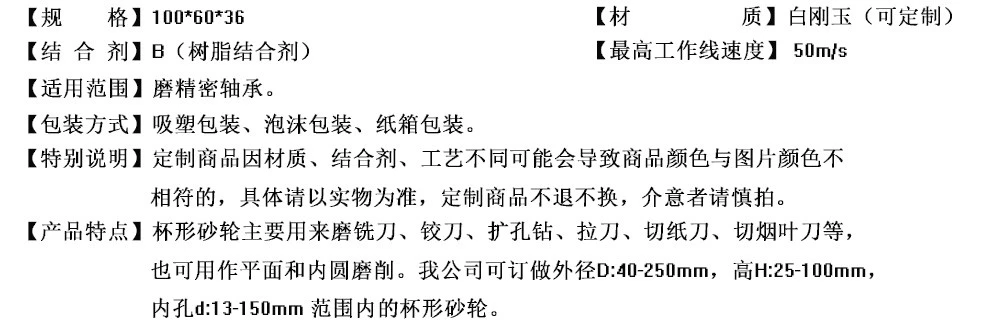 100*60*36杯型砂轮